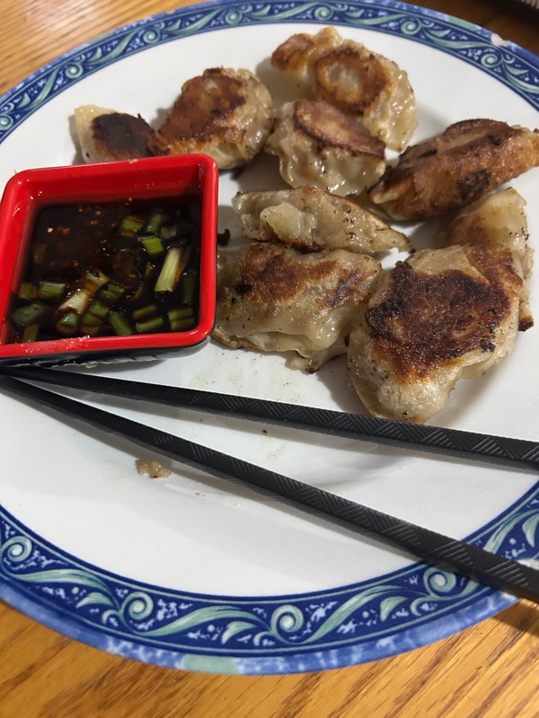 I fried up my own, using a nice mix of pork, shrimp, and mushroom (that I used again for Hong Kong’s shumai). I didn’t make my own wrappers, as the wonton wrappers available at the grocery store work perfectly. Just put some filling in the center, fold together, and press to have a nice moon shape. I used a dumpling shaper, which gave them an almost pierogi-like curve, but they’re unmistakably potstickers.. As they are frying, the wonton wrapper likes to stick to the pan, but I was able to get that nice golden brown crunch. I also made my own dipping sauce that compliments quite nicely. Make sure you fill with a little water, as that makes them juicier.