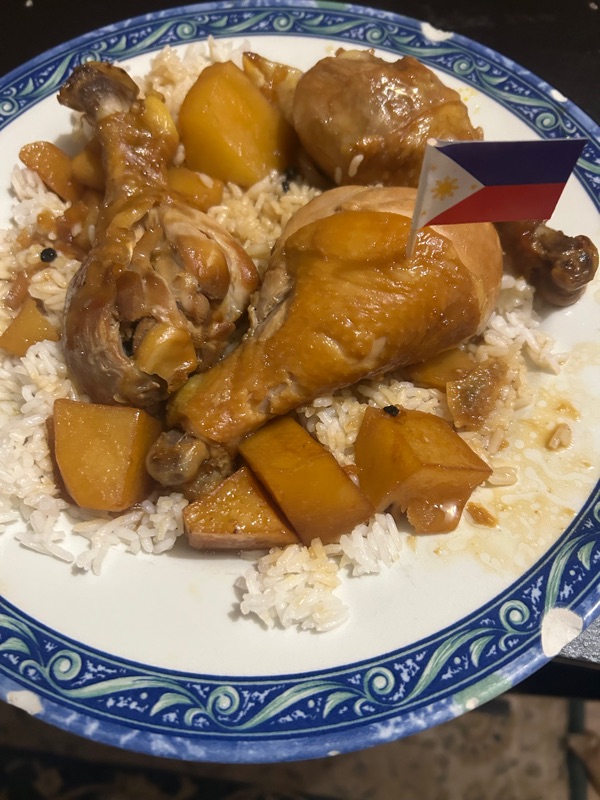 Description: A savory, tangy Filipino stew with chicken (or pork) braised in soy sauce, vinegar, garlic, and spices.