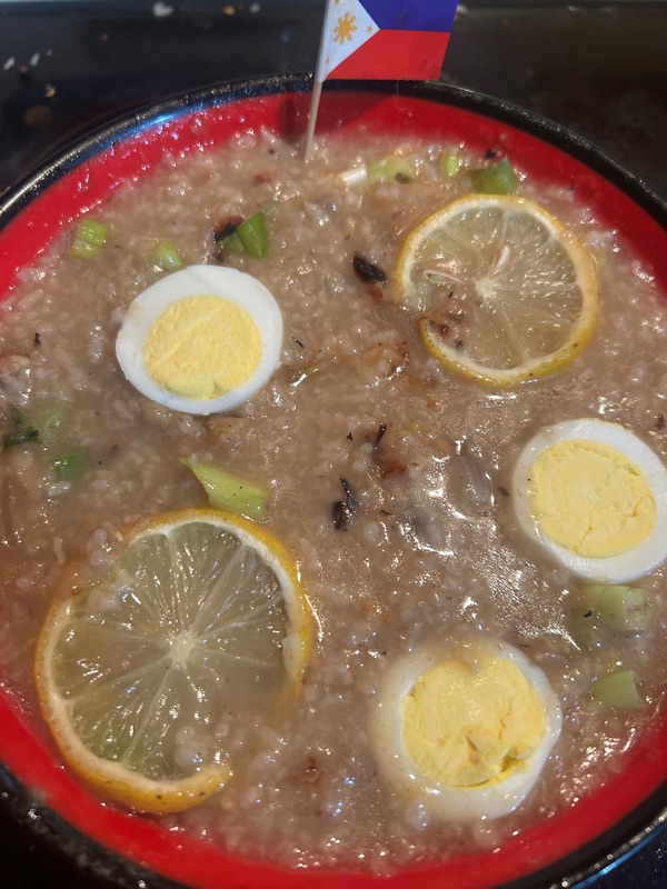 Description: A comforting rice porridge with chicken, ginger, and garlic, perfect for cold days.