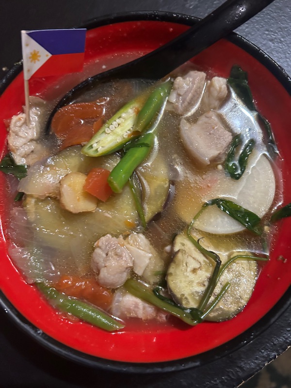Description: A tangy, savory soup with pork (or shrimp) and vegetables, flavored with tamarind.