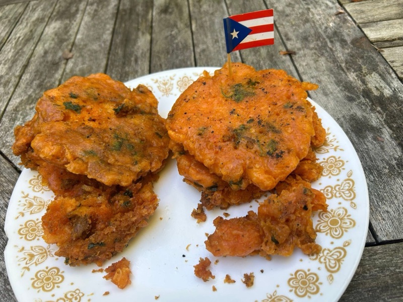 Bacalaitos, Puerto Rico’s golden, crisp-edged codfish fritters, were born in the crucible of colonial scarcity and reborn in the shadow of economic upheaval. Their origins trace back to the colonial era, when Spanish merchants brought bacalao, dried and salted cod. from the frigid North Atlantic to the tropical Caribbean. It was cheap, portable, and virtually indestructible, the perfect provision for ships and plantations. The enslaved and the poor, denied access to fresh meat or fish, learned to make miracles from its salt-cured flesh. They pounded it, soaked it, and folded it into flour and herbs, using Taíno and African frying techniques to create something both nourishing and defiant. Over time, this blend of necessity and creativity gave birth to bacalaitos, a fritter that crackled like fire in a pan, its aroma carrying through sugarcane fields and coastal shanties alike.